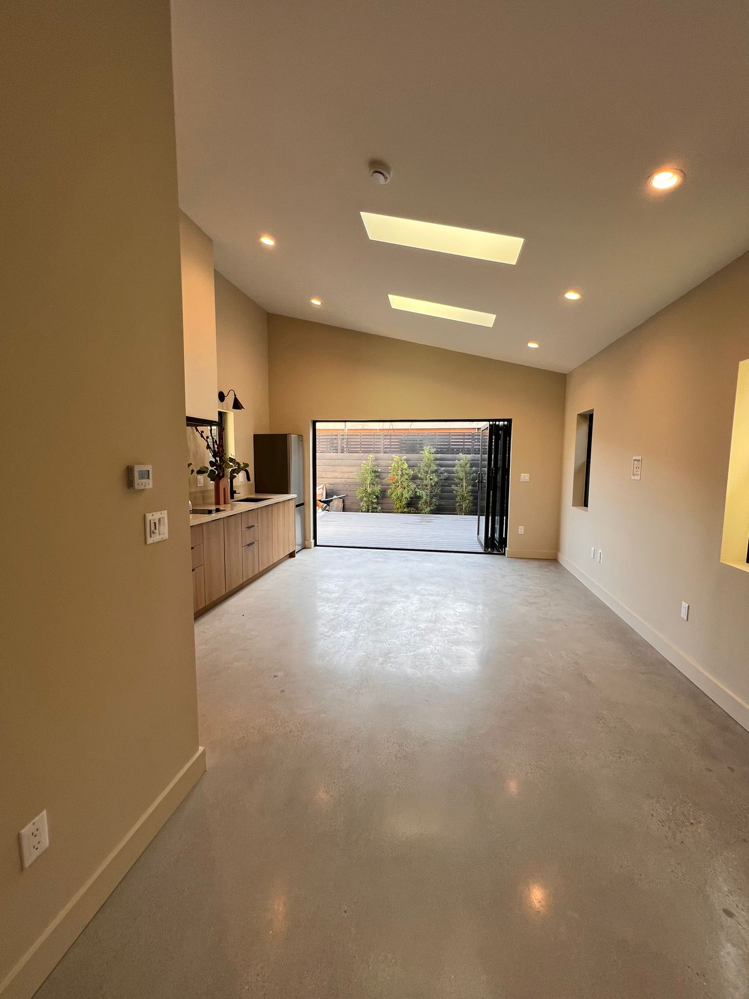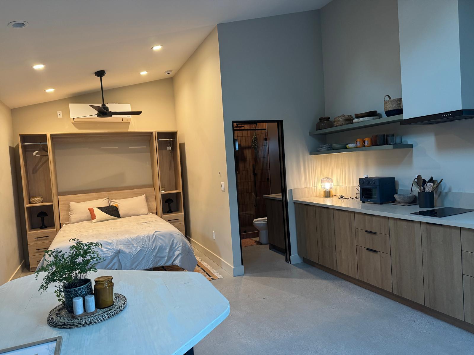 Exterior Conversion The old garage structure was fully renovated into a contemporary ADU. Fresh stucco finish paired with a modern roofline and updated lighting. Large folding glass doors create seamless indoor-outdoor flow. Open Living Area Polished concrete floors bring a […]